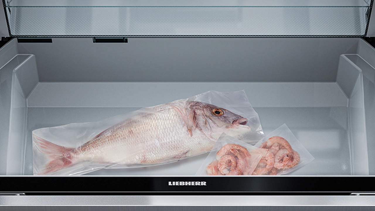 The BioFresh Plus Safe guarantees you a perfect storage climate and extra-long freshness of fruit and vegetables, meat and dairy products as well as fish and seafood – all in just one compartment. Depending on the food, the Meat & Dairy safe can be divided into various temperature zones from just over 0 °C (32 °F) to an icy -2 °C (28 °F).
