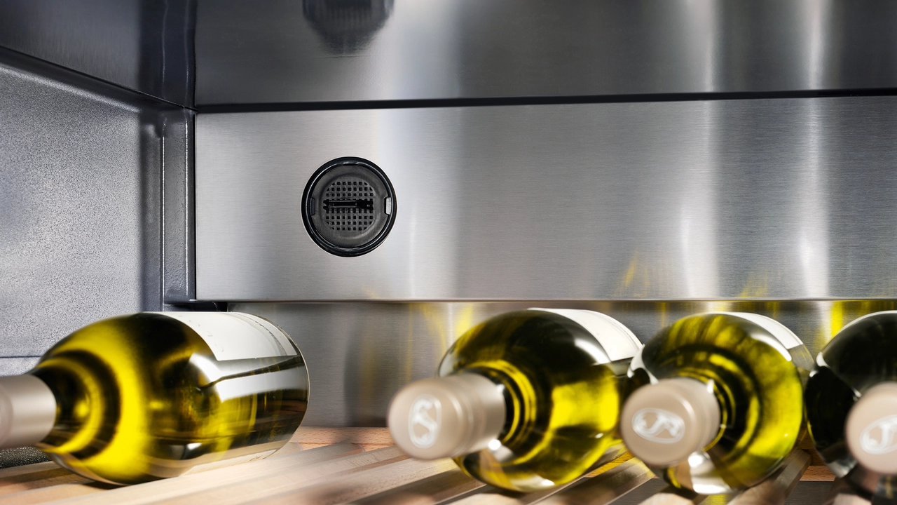 Environmental odours can affect wines stored for longer periods.In the wine fridge, perfect air quality is ensured through an easily-replaceable FreshAir activated charcoal filter.