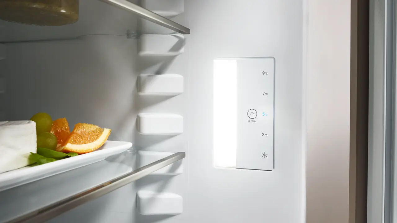 A gentle finger tap and you set your Liebherr to 3, 5, 7 or 9° with TouchControl. So simple – and efficient, as the sleek button is integrated into the interior, creating more space for all your fresh goods.