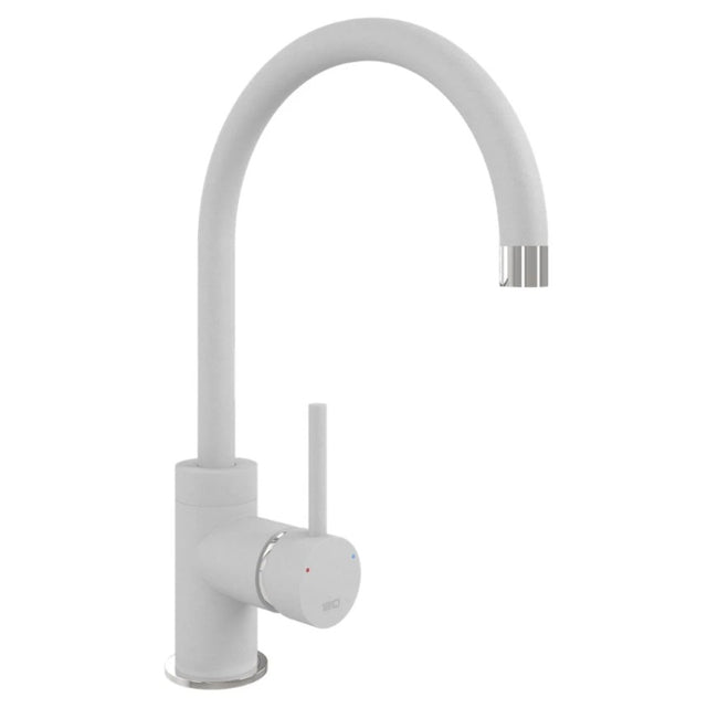 This Courbe kitchen tap has a sleek single lever control handle with clear yet discreet hot and cold indicators for ease of use. The total height of this tap is 331mm and the projection from centre of the body to centre of the spout is 196mm. The diameter at the base of the tap is 44mm.