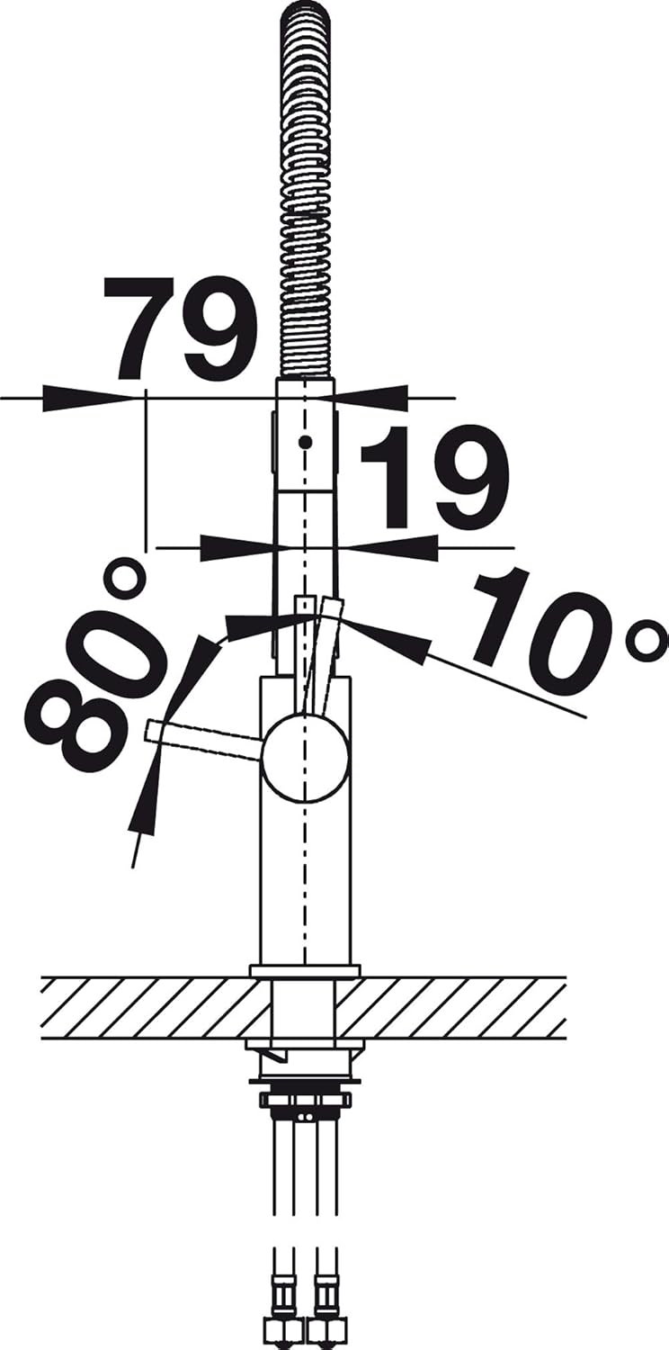 - Flexible spout (stainless steel spring) with a movable spray