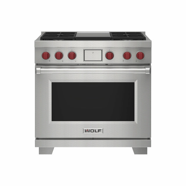 Wolf DF36450G/S/P 36" Dual Fuel Range - 4 Burners & Infrared Grill